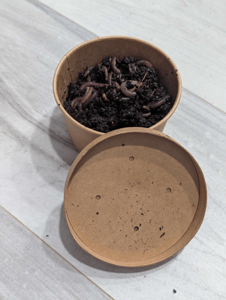 Worms come in coated cardboard which makes disposing of, biodegradable.